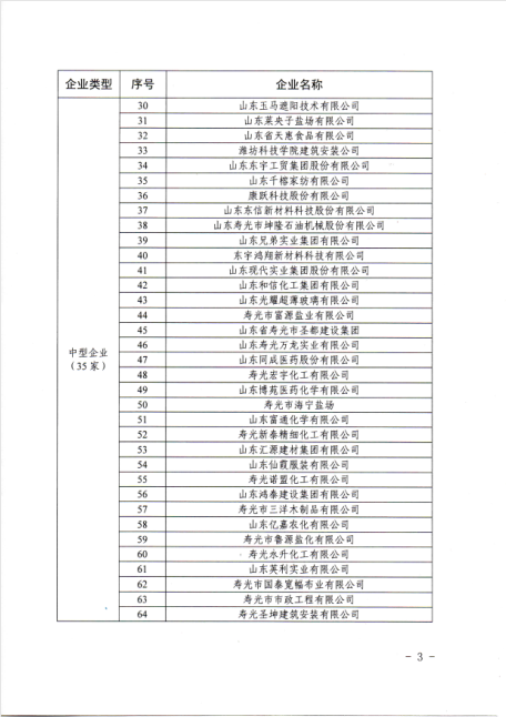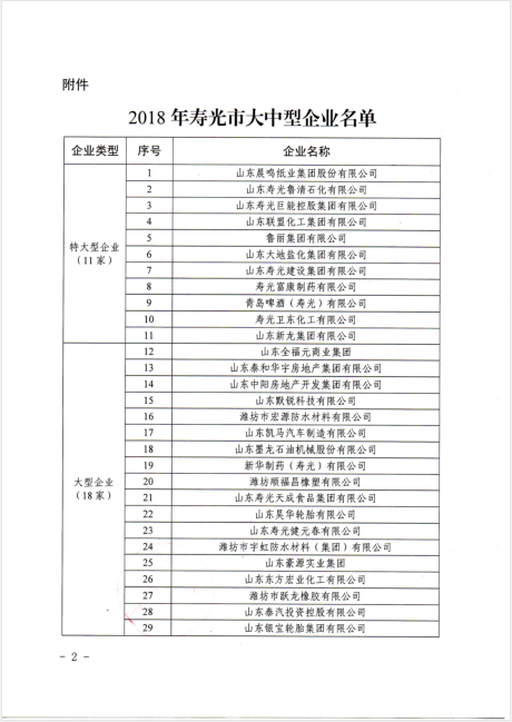 2018年壽光市大中型企業(yè)名單公布