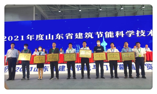 張永光院長、吳理侃副會(huì)長為山東省建筑節(jié)能科學(xué)技術(shù)獎(jiǎng)獲獎(jiǎng)單位頒發(fā)獎(jiǎng)牌